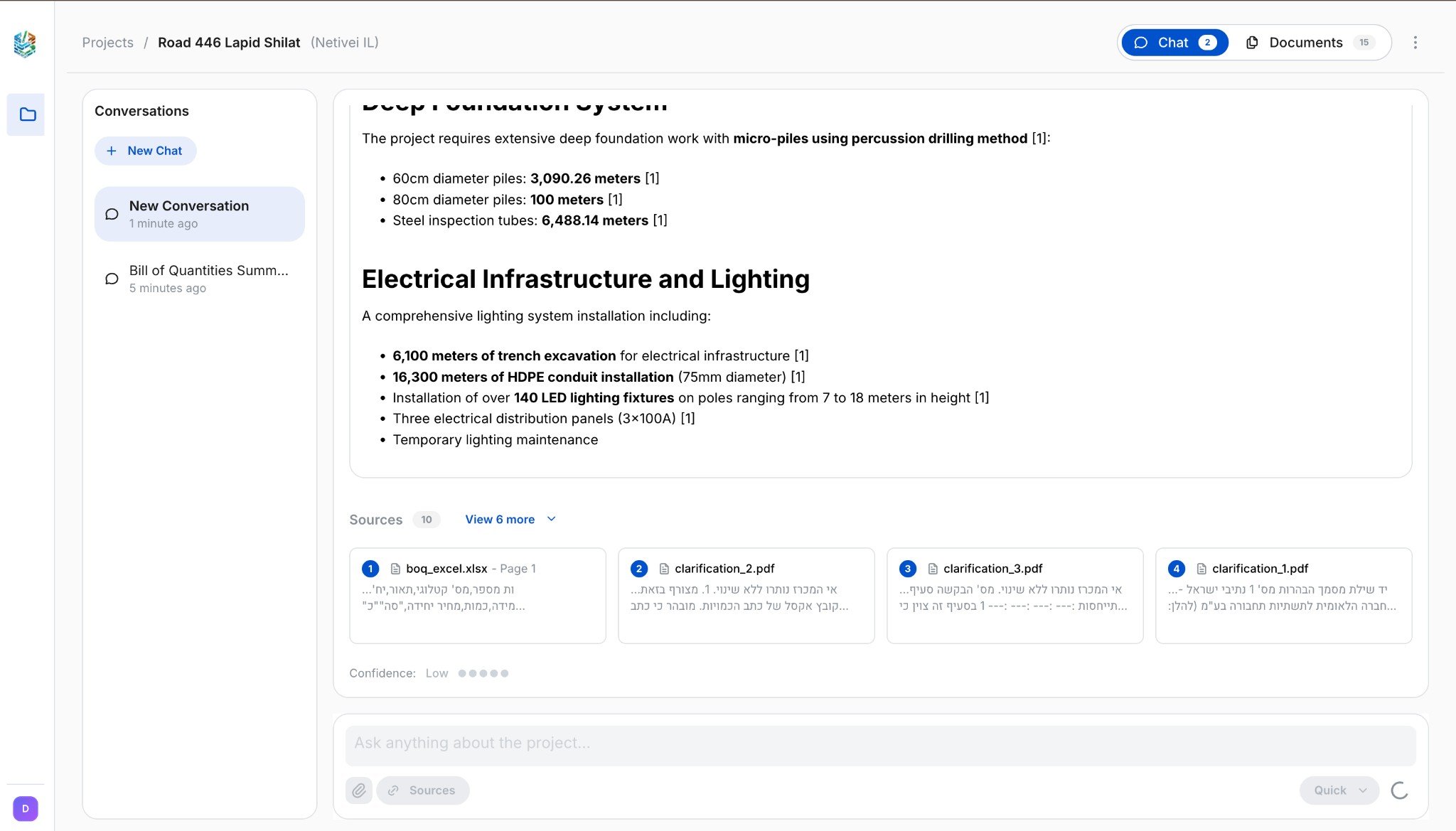 בינה מלאכותית שקורא את כל מסמכי הבנייה שלכם כדי שתוכלו לשאול שאלות ולקבל תשובות מיידיות עם מקורות.